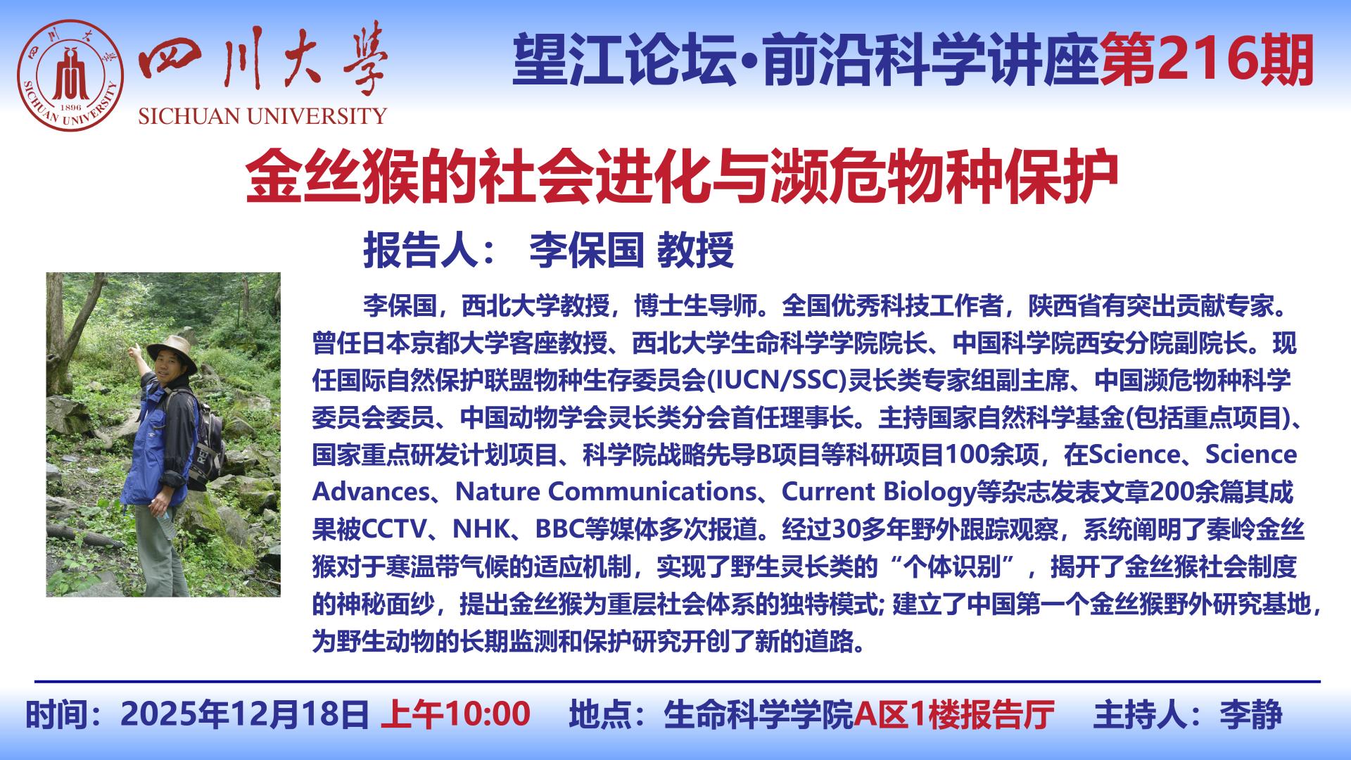 为进一步加强分子生态学领域的国际学术交流,聚焦学科前沿理论与技术进展,深入探讨基因组学、多组学、分子生物学及人工智能等新兴技术在生态研究中的创新应用,推动分子生态学的...
