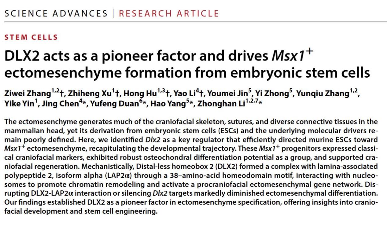 外胚间质谱系在哺乳动物头部形成中发挥关键作用,不仅是牙齿的祖细胞谱系,也生成大部分颅面骨骼、颅缝...