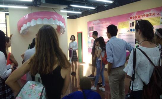 之后老师又带领同学们参观了华西口腔健康教育博物馆,这个博物馆也有三层。在第一层讲解员主要讲解了牙的发生与发育的过程,为什么不吃糖也会得龋齿,以及刷牙方式错误所带来的危害等。讲解员还在牙齿模型前亲身为我们做示范,演示正确刷牙的方式。在第二层讲解员主要讲解了儿童牙外伤的预防与处理、以及兔唇及腭裂的治疗等。二楼还有许多的动物牙齿展示,例如小熊猫的牙齿、大熊猫的牙齿、鲨鱼的牙齿等,同学们看到后都兴趣盎然。在第三层主要讲了磨牙的危害以及治疗,还有口腔癌症防治等方面的知识。