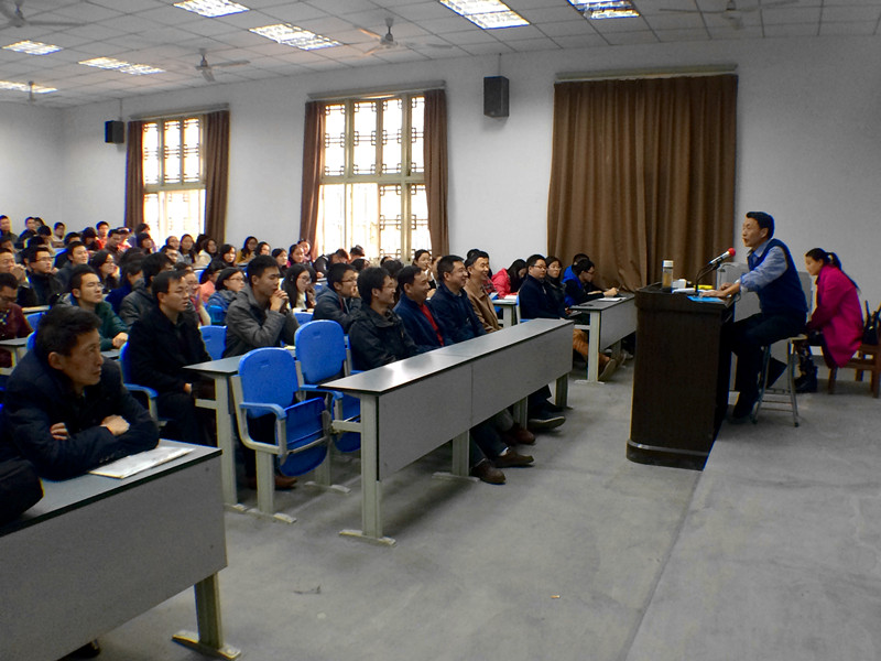 bat365在线中国官网登录入口于2014年11月28日下午2时30分,在望江校区东二教306教室举行了党的十八届四中全会精神宣讲报告会,特邀原校党委办公室主任、学校宣讲团成员、川大党校张诚教授主讲,学院党委书记岳碧松教授主持,学院领导班子成员和教职工党员以及学生骨干近200人参加了大会。
