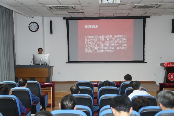 bat365在线中国官网登录入口专职组织员杨承东老师结合教育系统“支部建设年”的总体部署,按照《中国共产党支部工作条例(试行)》的相关内容,讲解了党支部标准化规范化建设的相关内容,杨老师在讲解中强调,必须不断提高党支部的组织力、感召力、引领力和执行力。强化教职工党支部在政治引领、规范组织生活、团结凝聚师生和促进学校中心工作等方面的主体作用;加强和规范学生党员教育培养和发展工作,发挥学生党支部建设在组织育人中的龙头作用。