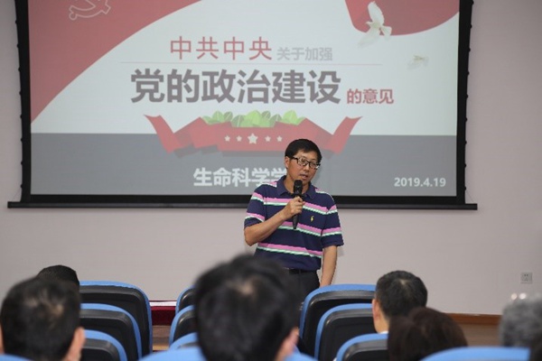 2019年4月19日下午,bat365在线中国官网登录入口领导班子成员在A区学术报告厅为全体教职工党员讲授党课。