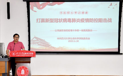 按照教育部《在常态化疫情防控中加强高校基层党建“四个一”行动方案》文件的要求,院党委书记林宏辉教授为全体与会党员讲授了《打赢新型冠状病毒肺炎疫情防控阻击战》微党课。林书记从学习解读总书记重要讲话、党中央部署疫情防控工作、中美疫情防控对比、院党委开展疫情防控工作和做好常态化的防控工作等5各方面讲解了新型冠状病毒肺炎疫情以来中国共产党领导下的国家在疫情防控工作以及取得的辉煌成绩,以及学校学院在疫情防控中的有力措施。林书记强调,作为共产党人要不负青春韶华,勇担历史责任,让党旗在防控疫情斗争第一线高高飘扬。