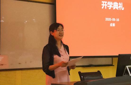 庄严慷慨的国歌奏毕,开学典礼随之拉开帷幕。王红宁院长首先代表学院及全体教职工向今年新入学的研究生同学表示祝贺和欢迎,随后做了题为《做一个有志向有情怀有本领的创新者》致辞。王院长在致辞中,首先引用李言荣校长在校开学典礼上“精而广”寄语,激励新同学们在新时代、新征程上砥砺前行;随后在学长“江姐”诞辰一百周年之际,寄望新生传承学院的优良传统,做有理想、有情怀、有担当的革命精神传承人;接着引述了习近平总书记在与科学家座谈会上的讲话,鼓励全体新同学从读研开始,坚持科研创新,拓展科学技术的广度和深度。最后,王院长嘱托新生们要不忘初心、勤勉笃学、行稳致远,做“顶天立地”的科研,将个人理想与国家需求结合起来,成为更好的自己。