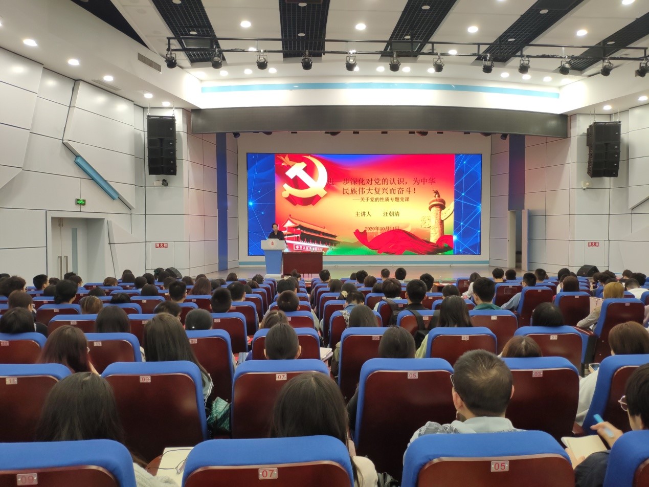 开学典礼后,原校党委组织部部长汪朝清教授为学员们讲授了首场培训课程“党的性质”。汪教授从“中国共产党是什么性质的党”一问开始,从党的一大开始到十九大,从不同阶段党章的修改,分析了历年来党章和党的性质的变化,深入阐释党的性质的科学内涵和精神实质。之后,汪教授又从党的阶级性、代表性、功能性、方向性、目的性等方面为学员们进行了深入的讲解。最后,从新时代怎样才能坚持党的性质,为党的事业而奋斗方面启发同学们作为党员发展对象应不忘初心、牢记使命,将中国梦与个人梦相结合,勇于拼搏,不断进步。