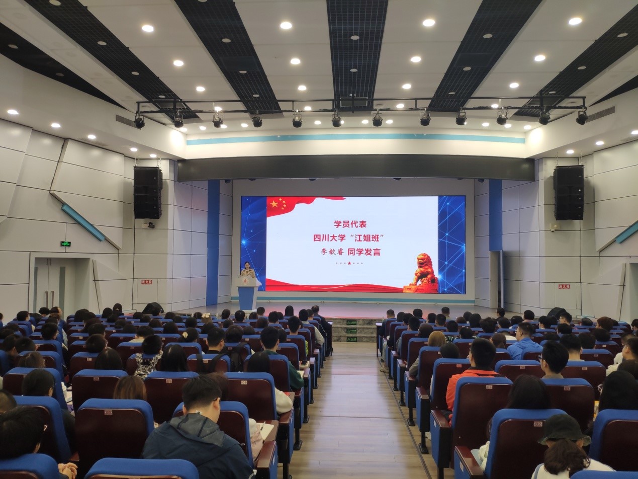 bat365在线中国官网登录入口“江姐班”李歆睿同学作为学员代表发言。她表示,时值我们的优秀校友、优秀共产党员 “江姐”诞辰100周年之际,作为“江姐班”的一员,在这个时刻能够追寻江姐的足迹,努力成为一名党员,倍感光荣,有一种强烈的使命感。她将以江姐为榜样,继承革命先辈的艰苦奋斗精神,不断提升个人认识,锤炼意志品质。不负习总书记的嘱托,努力成为一名又红又专,堪当民族复兴大任的时代新人。