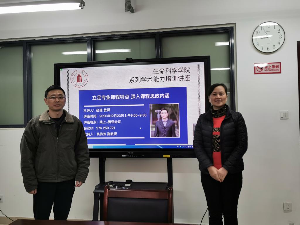为贯彻教育部下发的《高等学校课程思政建设指导纲要》的通知,进一步深化教育教学改革,推进课程思政建设,落实“立德树人”根本任务,2020年12月23日上午,学院邀请了bat365官网生物技术系主任赵建教授进行了题为《立足专业课程特点 深入课程思政内涵》的课程思政教学线上分享交流会。会议由吴传芳教授主持,全校共计二十余名任课教师参加了此次交流会。