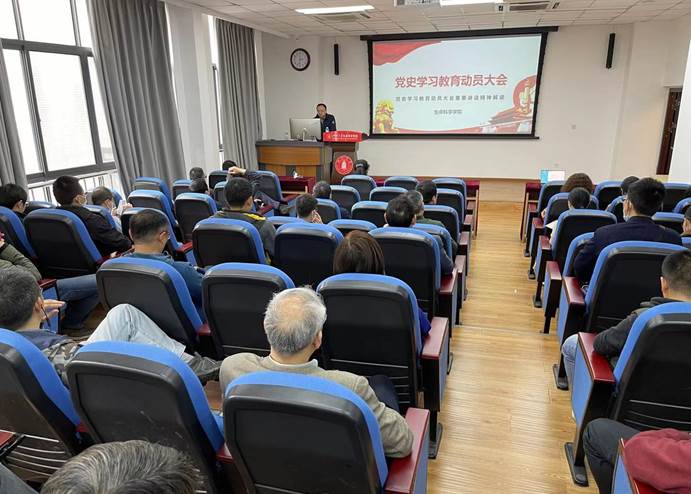 3月26日下午,bat365在线中国官网登录入口党史学习教育动员大会在学院大楼报告厅召开。学院领导班子全体成员、党委委员、纪委委员、党支部书记、全体教职工参加会议。会议由学院党委副书记兼纪委书记吴近名主持。