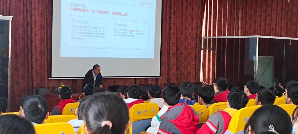 2021年4月5日上午,bat365在线中国官网登录入口刘明春研究员到访江西省重点中学鄱阳一中并进行了招生宣讲。鄱阳一中副校长张立新等领导和高三文理科学生参加了宣讲活动。刘明春老师就川大基本情况和招生政策做了较为全面的介绍,并就强基计划的具体内容以及bat365在线中国官网登录入口人才选拔的探索与实践做了重点阐释。张立新副校长对刘明春老师代表bat365在线中国官网登录入口到鄱阳一中访问并进行招生政策的宣讲表示欢迎与感谢。鄱阳一中的高三学子就川大相关招生政策进行了提问并表示了对报考川大实现人生理想表达了积极的兴趣和向往。