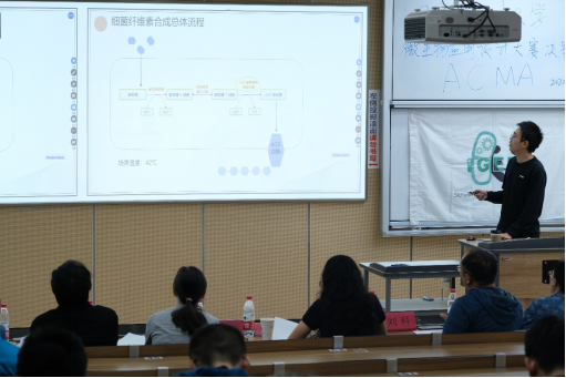 紧接着的是扣人心弦的项目展示,队伍成员就项目的选题背景,研究内容,技术路线,可行性和创新性等方面进行介绍。评委老师们就项目的设计与思路,项目的技术路线等方面与同学进行了探讨,并给出了指导意见和建议。经过激烈角逐,由徐田同学为负责人的项目《I型CRISPRi技术在解脂酵母中合成黄酮类物质的应用》获得本次大赛一等奖;由吕卓婷同学为负责人的《基于大肠杆菌的秸秆降解和细菌纤维素生产》以及由梁烨熙同学为负责人的《基于双稳态系统信息素农药在植物内生大肠杆菌中的条件表达》两个项目获得二等奖;三等奖的三个项目分别为金依蕾组的《基于绿僵菌表达神经肽DH37防控甲虫载体的构建》、李天依组的《“与”门调控大肠杆菌自动化产原儿茶酸》,以及王虹懿组的《基于无细胞系统检测重金属及放射性污染的双功能试纸》。随后进行了现场颁奖。