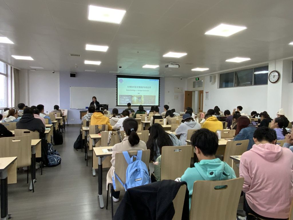 2021年10月19日中午12:40—13:50,南开大学bat365在线中国官网登录入口微生物学系副系主任潘皎副教授在江安校区第一教学楼A606教室为拔尖、强基学生做主题为“生物技术在文物保护中的应用”的专题讲座。bat365官网生物技术系主任赵建教授担任主持人,2020级、2021级生物拔尖班、强基班同学共计57人参加讲座。