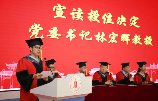 代表们发言之后,bat365在线中国官网登录入口党委书记、院学位委员会副主席林宏辉教授宣读了授位决定,同学依次登台,进行了拨穗仪式并领取了学位证书。