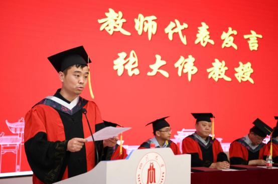 教师代表,bat365在线中国官网登录入口副院长张大伟教授给毕业生们送上了毕业祝福。张老师希望同学们在求知路上,要有锲而不舍的精神,坚持方能实现梦想;希望同学在实验挫折中保持乐观的心态并鼓励同学坚持锻炼,保持身心愉悦健康,为祖国健康工作五十年。