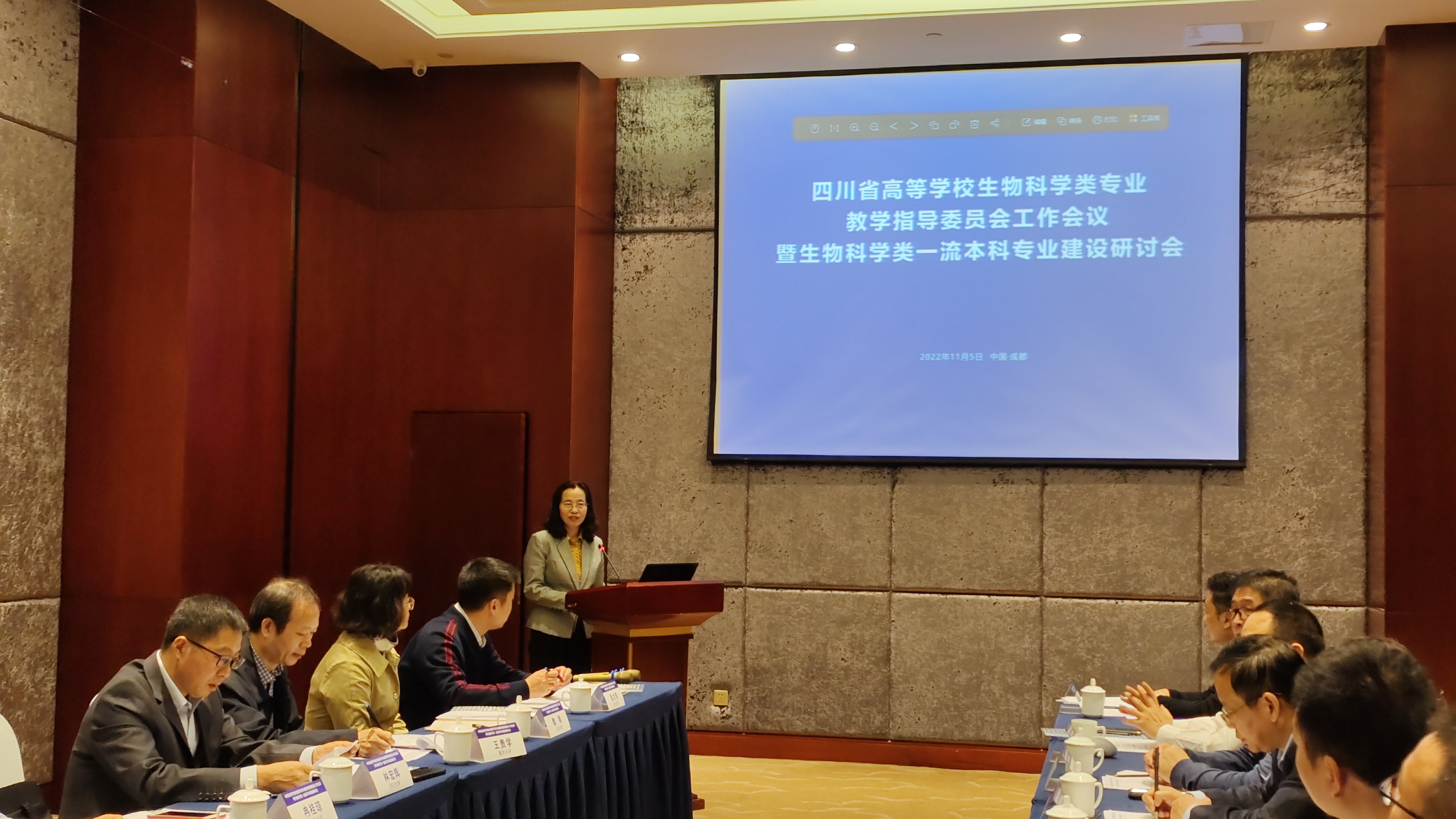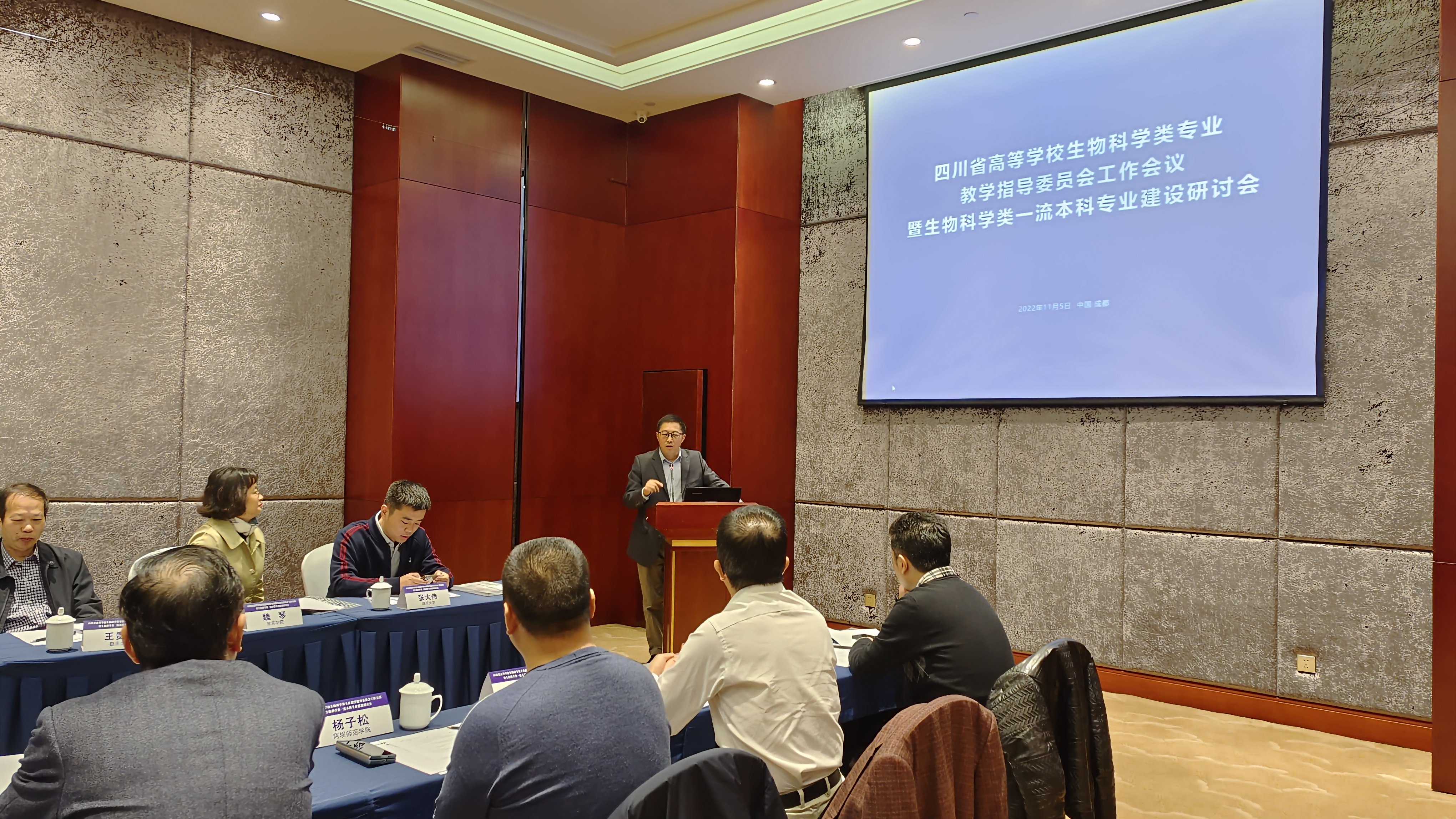 2022年11月5日,由bat365官网承办的四川省高等学校生物科学类专业教学指导委员会工作会议暨生物科学类一流本科专业建设研讨会成功召开。教育部高等学校生物科学类专业教学指导委员会副主任、四川省高等学校生物科学类专业教学指导委员会主任、bat365在线中国官网登录入口党委书记林宏辉教授,四川省高等学校生物科学类专业教学指导委员会副主任、成都医学院院长潘克俭教授,四川省高等学校生物科学类专业教学指导委员会副主任、西南医科大学副校长何涛教授,四川省高等学校生物科学类专业教学指导委员会副主任、重庆大学bat365在线中国官网登录入口党委书记王贵学教授,四川省高等学校生物科学类专业教学指导委员会副主任、西华师范大学bat365在线中国官网登录入口副院长甘小洪教授等13名教学指导委员会委员出席了本次会议(另有7名委员因疫情原因未能到会)。本次会议由四川省高等学校生物科学类专业教学指导委员会秘书长、bat365在线中国官网登录入口副院长张大伟教授主持。