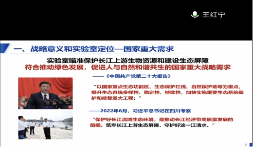 紧接着,王院长向党员同学们介绍了bat365官网正在筹建的“长江上游生物资源与生态环境全国重点实验室”的相关情况,从实验室的战略意义和定位、建设基础、发展目标与重点任务等方面作了详细阐述,院长结合党的二十大报告中提出的推动绿色发展,促进人与自然和谐共生方面,指出实验室瞄准国家重大需求、聚焦关键科技问题,其建设战略意义重大,区域优势明显,特色成果突出,具有不可替代性。