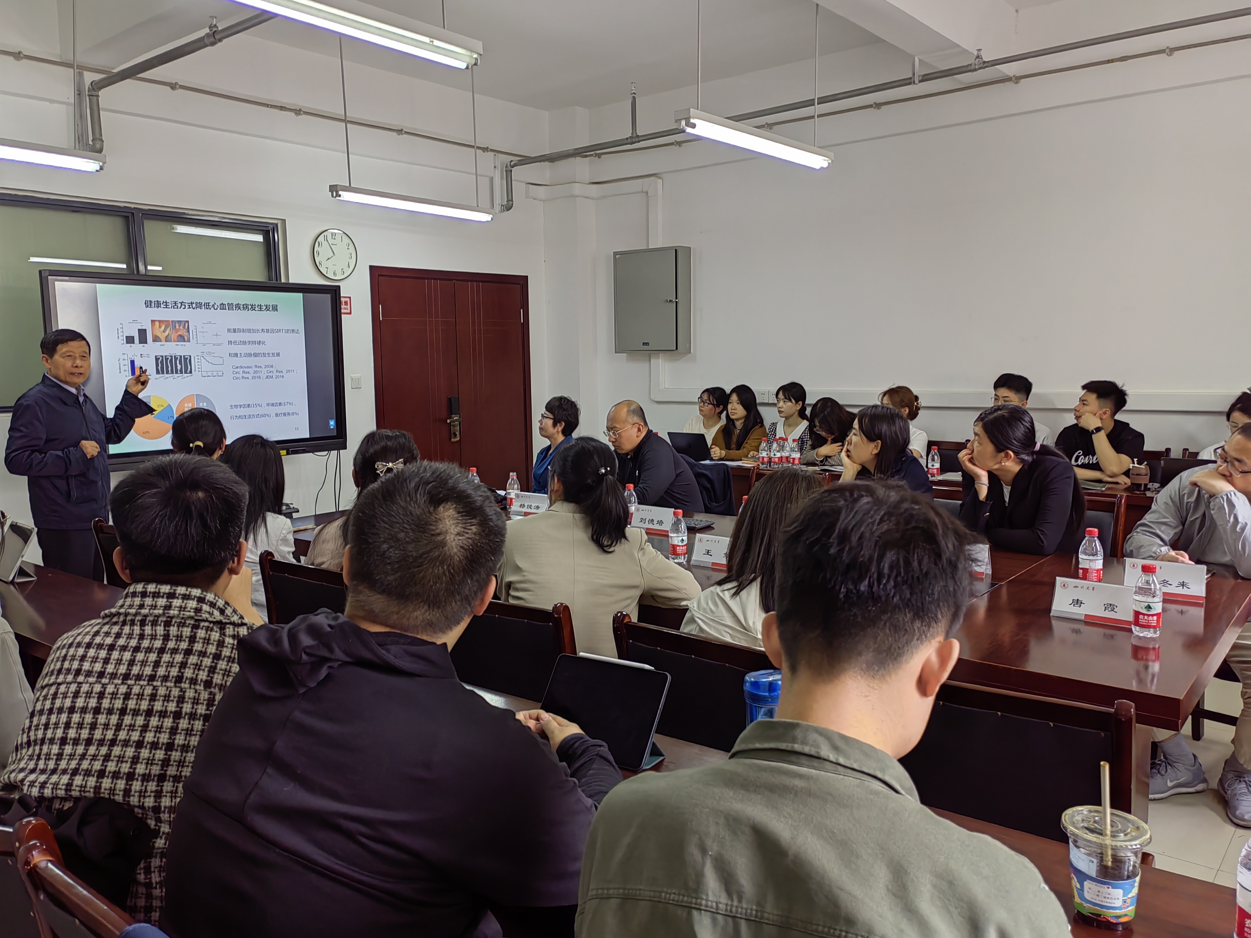 刘院士还详细介绍了课题组的研究方向,包括“重大疾病的积极预防”“SIRT1减缓动脉粥样硬化的发生发展”等,强调了健康生活方式在降低心血管疾病发生方面的重要作用。他还为同学们解读了实验室文化,鼓励拔尖强基的同学们要勇于创新。