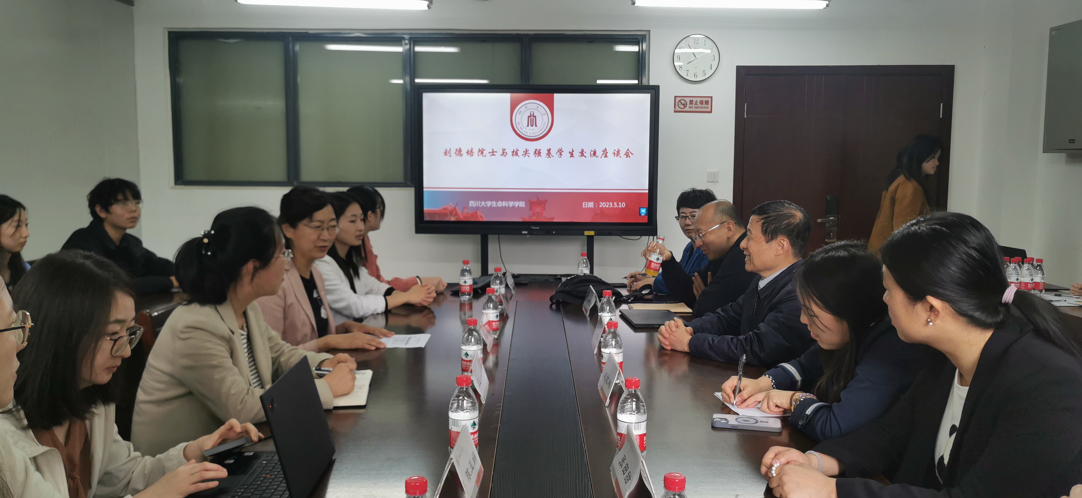 2022年5月10日下午,协和医学院刘德培院士携课题组及相关老师与bat365在线中国官网登录入口拔尖强基学生在bat365在线中国官网登录入口B207举行交流座谈会。bat365在线中国官网登录入口院长、拔尖强基计划首席科学家王红宁教授、强基班班主任王婧教授、15名拔尖强基同学参加本次交流座谈会。
