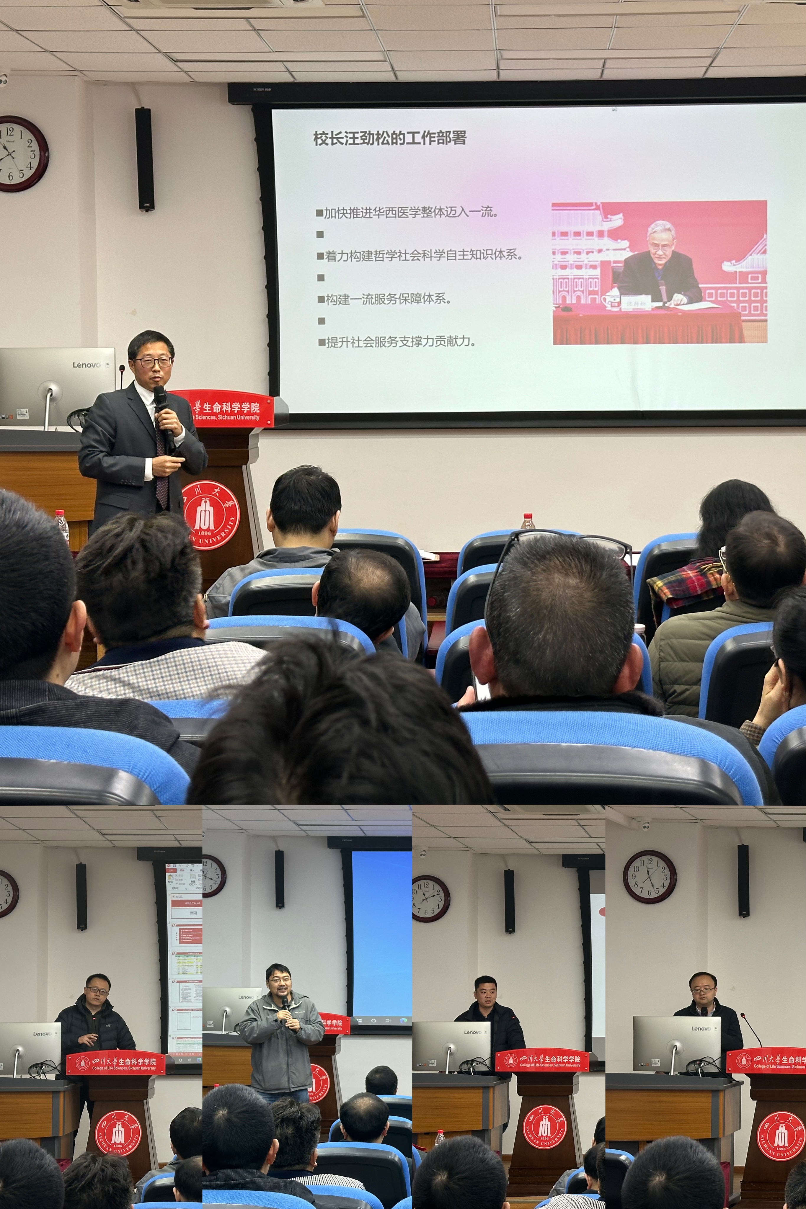 接下来,林宏辉教授传达了学校2024 年新学期工作布置会精神和学校2024年度人事人才工作布置会精神。要求全院教职工要坚持以习近平新时代中国特色社会主义思想为指导,胸怀大局、把握大势,求真务实、开拓创新,认真贯彻落实新学期学校工作部署和学校九届三次全会“1+5”文件精神,积极推进学校和学院重点工作落实落细。并对进一步加强学院师德师风建设和做好安全稳定工作提出明确要求。各分管院领导结合学院工作实际,分别从谋划学科发展方向,凝练学科特色,抓好学院人才培养、师资队伍建设、学科建设、科学研究,做好海外引才工作等方面提出要求,希望全院上下以更加务实的行动、更加昂扬的精神状态把各项工作抓好抓实,推动学院事业高质量发展再上新台阶!