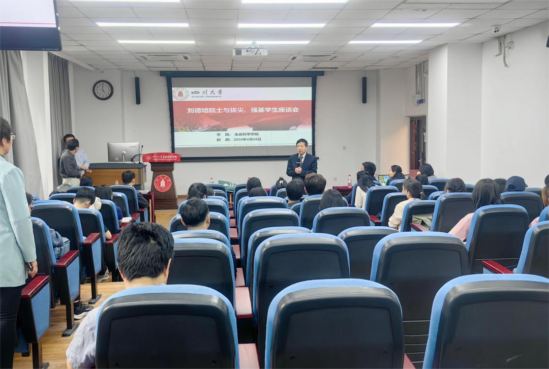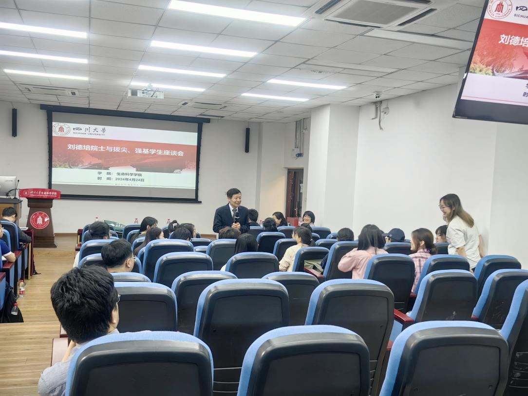 2024年4月24日下午,在bat365在线中国官网登录入口A101会议室,北京协和医学院基础学院中国工程院院士刘德培教授携课题组与学院拔尖强基学生举行了交流座谈。bat365在线中国官网登录入口副院长李中瀚教授、20级拔尖班班主任赵建教授、各级拔尖强基同学参加本次交流座谈。