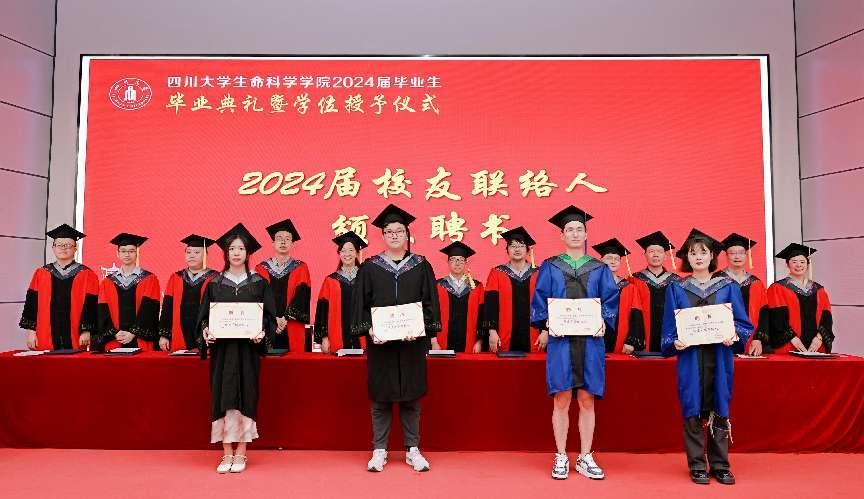 授位仪式完成之后,林宏辉书记、王红宁主席2024届毕业生校友联络人颁发聘任证书,希望他们在毕业之后作为桥梁促进学院与同学的联系,希望各位同学永远记得学院是他们的家。在熟悉的校歌旋律中,2024届毕业典礼暨授位仪式圆满结束。