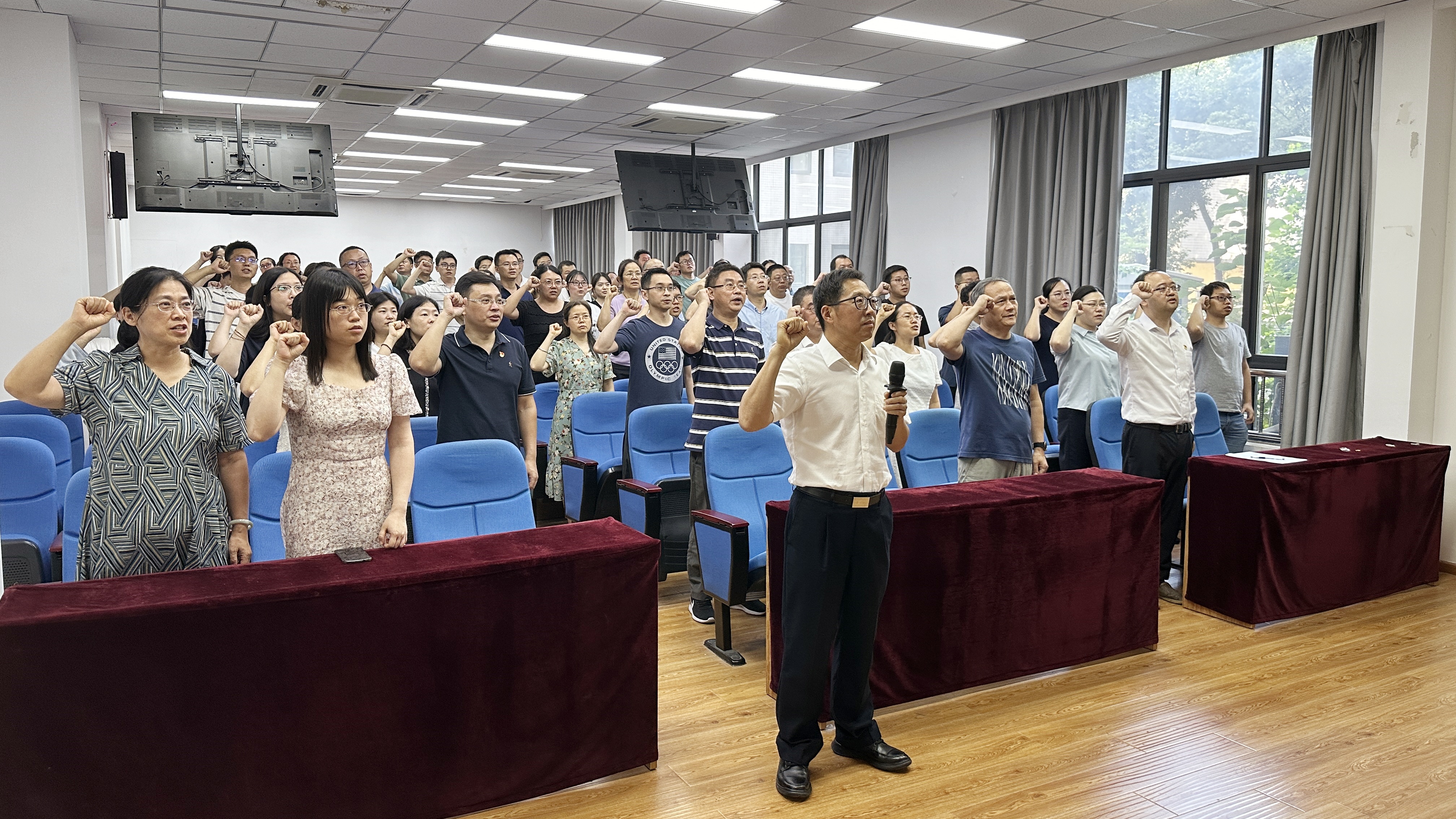 最后,在党委书记、院长林宏辉同志的带领下,全体党员在党旗下,重温入党誓词,大会圆满落幕。