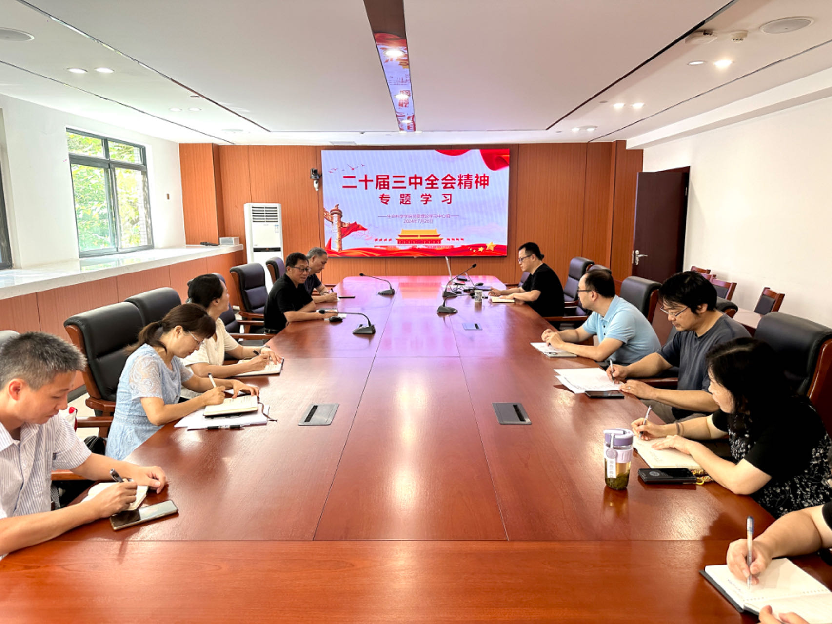 7月26日,学院党委召开理论学习中心组会议,学习贯彻党的二十届三中全会精神。中心组全体成员、专职组织员及教师党支部书记参加学习会议。学院党委书记、院长林宏辉同志主持会议。