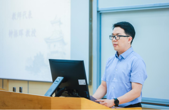 教师代表钟振晖教授对2024级新生们表示了热烈的欢迎,并结合自身经历向同学们提供了宝贵的发展建议。钟老师嘱咐同学们,进入大学后首先便是要开拓视野,学习前沿知识成为对生命科学领域有价值的人才;其次便是要持续不断的努力和坚持不懈的奋斗,遇到困难时主动寻找解决之道,不要轻言放弃;最后是要注重多元发展,充分利用大学中丰富的学术资源和展现个人才华的平台,提升各方面的能力,增强社会责任感,找到最适合自己的成功道路。