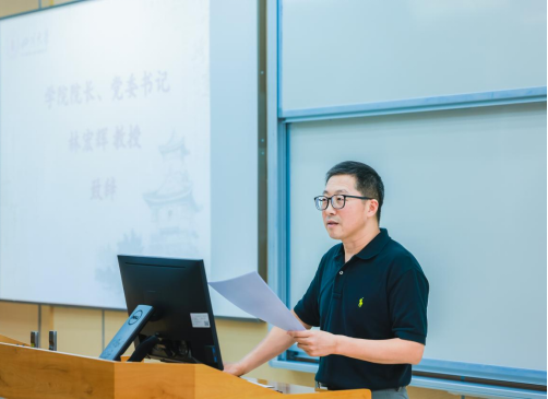 新生代表是2024级强基计划的余东锐同学,他提出同学们应当思考学习的意义,在当下“百年未有之大变局”的时代,号召同学们选择“最能为人类而工作的职业”,摆脱厌倦、散漫、冷漠和自我主义,为了全人类的共同福祉而奋斗。