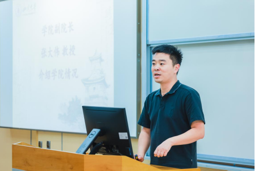 学院副院长张大伟教授向新生们介绍学院情况,从学院发展历程、科研教学平台、专业发展和教学体系到毕业生的发展现状,向新生们展示了学院的综合实力,描绘了生物科学的广阔前景,激发新生们对未来的期待。张院长提到,当今人类生产生活的各个领域都离不开生物科学,从食品安全、环境、资源与健康乃至国防安全等各方面的问题都依赖于生物科学与生物技术。希望同学们能够利用好学院良好的平台,积极进取、投身科学研究,创造自己的光明未来。