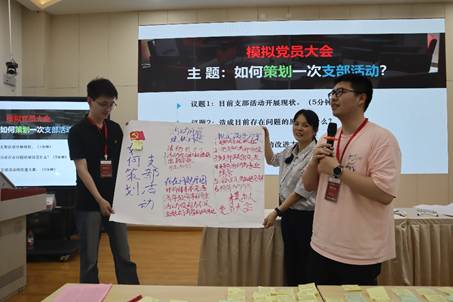 bat365在线中国官网登录入口教育培训部第二党支部书记史梅就“如何策划一次支部活动”进行讲解,并组织模拟党员大会,随机选取三名学员组成支委,并与现场学员充分互动,围绕开展支部活动的难点及其原因展开深入交流,并就如何提升支部活动质量展开讨论。