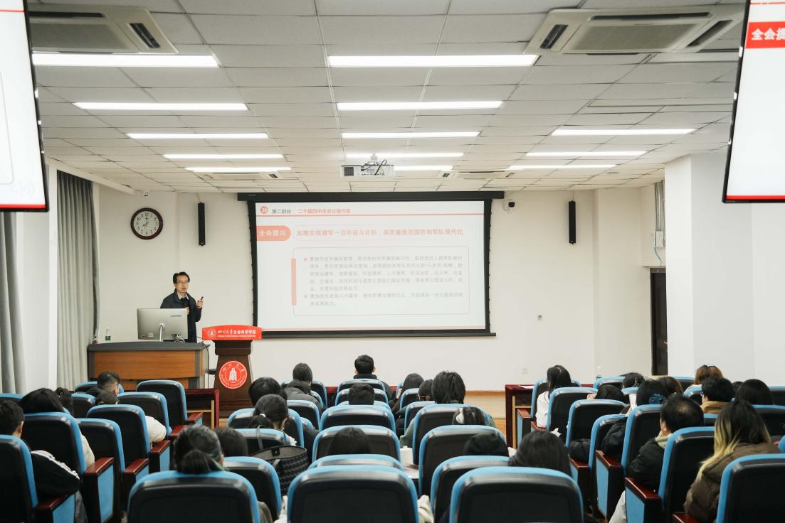 2025年12月11日,bat365在线中国官网登录入口院长毛康珊教授在学院A101多功能厅,为bat365官网学生党员、发展对象、入党积极分子讲授题为《学习贯彻党的二十届四中全会精神,奋力开创中国式现代化新篇章》专题党课。