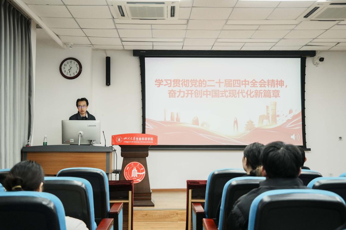 随后,毛院长结合生命科学学科特色,重点介绍了全会关于生态文明建设的系统部署,包括绿色转型的总要求、“双碳”牵引路径以及筑牢国家生态安全屏障等内容。他还特别介绍了全会通过的《中共中央关于制定国民经济和社会发展第十五个五年规划的建议》中对生物经济作出的重要部署,鼓励生科人在相关领域发挥专业作用。