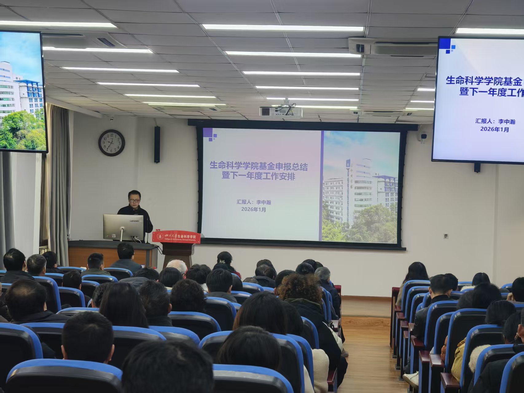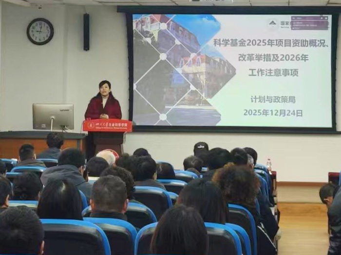为扎实推进2026年度国家自然科学基金申报工作,进一步提升学院基金项目申报质量和获准率,2026年1月4日,学院在生命科学大楼A101会议室召开2026年国家自然科学基金申报动员会。科学技术发展研究院副院长武梅、基金项目管理科科长朱卫华,学院党委书记林宏辉、院长毛康珊等院领导及全体教职工参加会议。会议由学院副院长李中瀚主持。