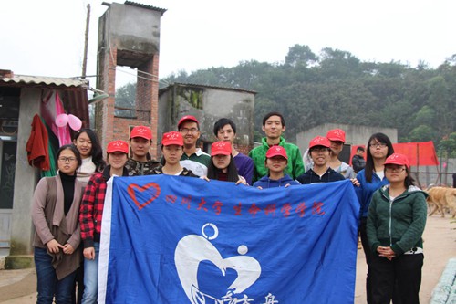 早上八点,志愿者们集合完毕,向着爱之家出发。经过了接近两个小时的路程,于十点钟到达目的地,同学们热情高涨。在相关工作人员的指导和带领下,志愿者们开始工作,主要是除草和清扫爱之家内路面上的垃圾和粪便。虽然工作量很大,但是没有一个同学叫苦;虽然身上或多或少沾染了一些污秽,但是没有一个志愿者抱怨,大家纷纷表示“总算是体验了一回志愿者的辛苦”。活动接近尾声时,志愿者们拿出队旗拍照留念。“爱之家”的工作人员也对志愿者的工作表示十分满意。