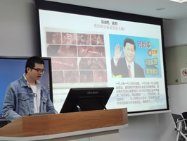 最后,学院学生科副科长、学生党建负责老师黄艳老师对本次活动进行了总结。她希望在座的党员同志、入党积极分子们能够向吴思娴和褚志文两位同志学习,鼓励大家努力学习“新时代党的十九大精神”,努力提高工作能力。勉励党员们在思想和行动上自觉向党中央看齐,深入学习,统一思想认识,充分利用好今天学到的“干货”,积极开展主题党日活动、落实“三会一课”等党内基本生活制度。