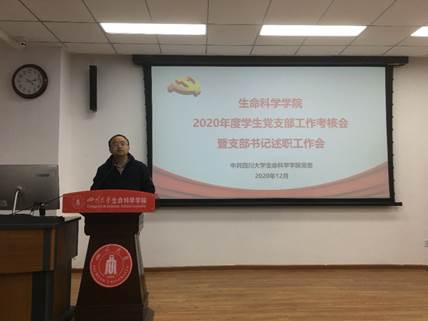 为落实全面从严治党要求,加强对学生党支部的管理与考核,按照《中共bat365在线中国官网登录入口委员会关于进一步加强和改进党支部建设的实施意见》(川大委[2017]62号)对基层党支部工作考核的相关要求,2020年12月11日,于学院A101会议室召开了学生党支部2020年度工作总结暨支部书记述职报告会。学院党委副书记兼纪委书记吴近名同志、学生党建工作负责人、学生科副科长黄艳同志代表学院进行了考核。本次考核由学院各学生党支部书记和组织委员共同参会,会议由黄艳同志主持。