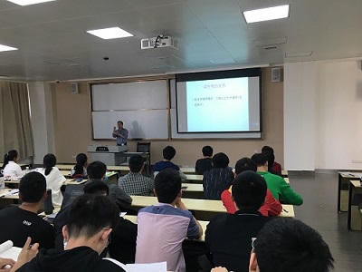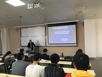 接下来丁显平教授也详细讲述了其实验团队的研究方向、科研成果、专利产品,介绍了他们的科研团队以及利用生物技术转化的产品,为同学们生动地讲解了生物技术的实际转化。