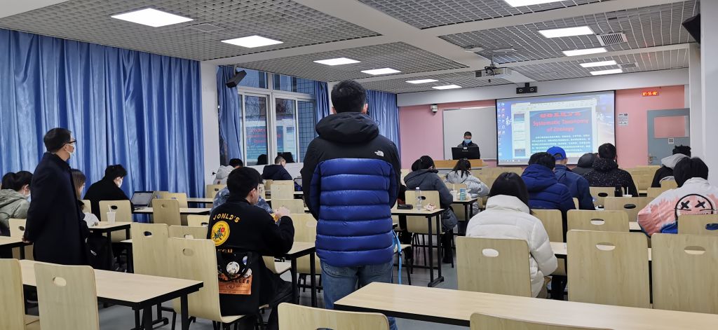 教师呈现的教案内容详实、生动,学生的课前准备充分。其中张佩老师的动物种群生态学课程,课堂教学把冬奥会元素融入课程内容,同学们学习热情高涨,抬头率较高,课程思政和专业教育融合效果好。宋昭彬老师的动物系统分类课程,宋老师提前到达教室,做好线上听课安排,保证未返校学生和在校学生一起同步学习。Magan Price 老师由于疫情原因,现在还在国外未返校,本学期开设的课程均采取线上上课的方式,同学们全部在教室线上上课。