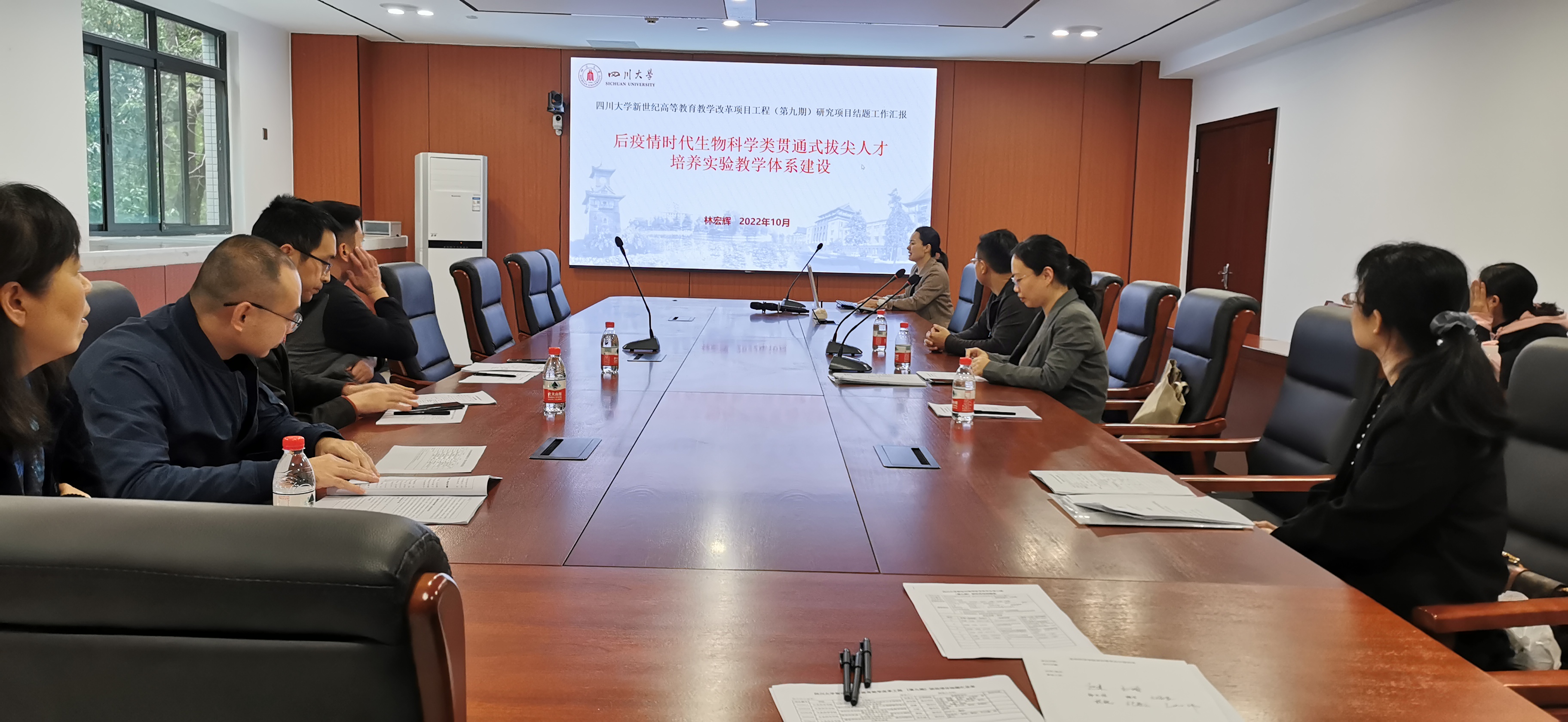 林宏辉教授的项目《后疫情时代生物科学类贯通式拔尖人才培养实验教学体系建设》由王甜老师代为汇报。此项目已经取得了阶段性的成果,项目建设育人成效初显,例如改造实验项目14项,支持8门实验课程的教学;对标“一流本科课程”建设标准,优化实验课程教学体系,完成实验教学课程改革1门;贯通式实验教学培养模式提高学生科研创新能力,面向学生开设创新实验项目(非“大创”立项)28 项,指导学生 109 人,指导学生申报大创类项目6项,参加生物类科学竞赛8项,获全国大学生生命科学竞赛国家级一等奖 1项、二等奖1项,省级一等奖2项、二等奖2项、三等奖2项。