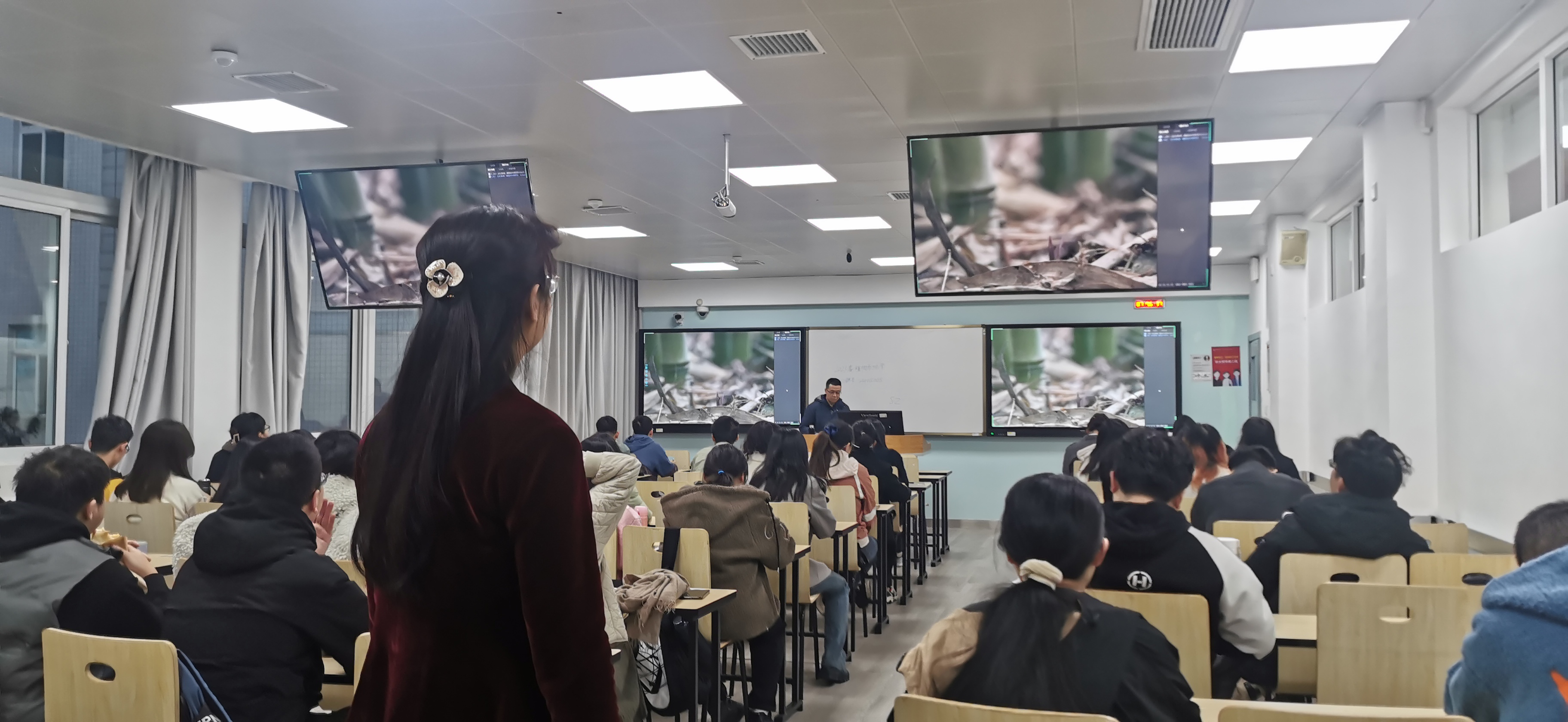 教室均为多功能教室,宽敞明亮。教室扩音设备好,坐在后排的学生也能听清楚教学内容,整体教学效果较好。