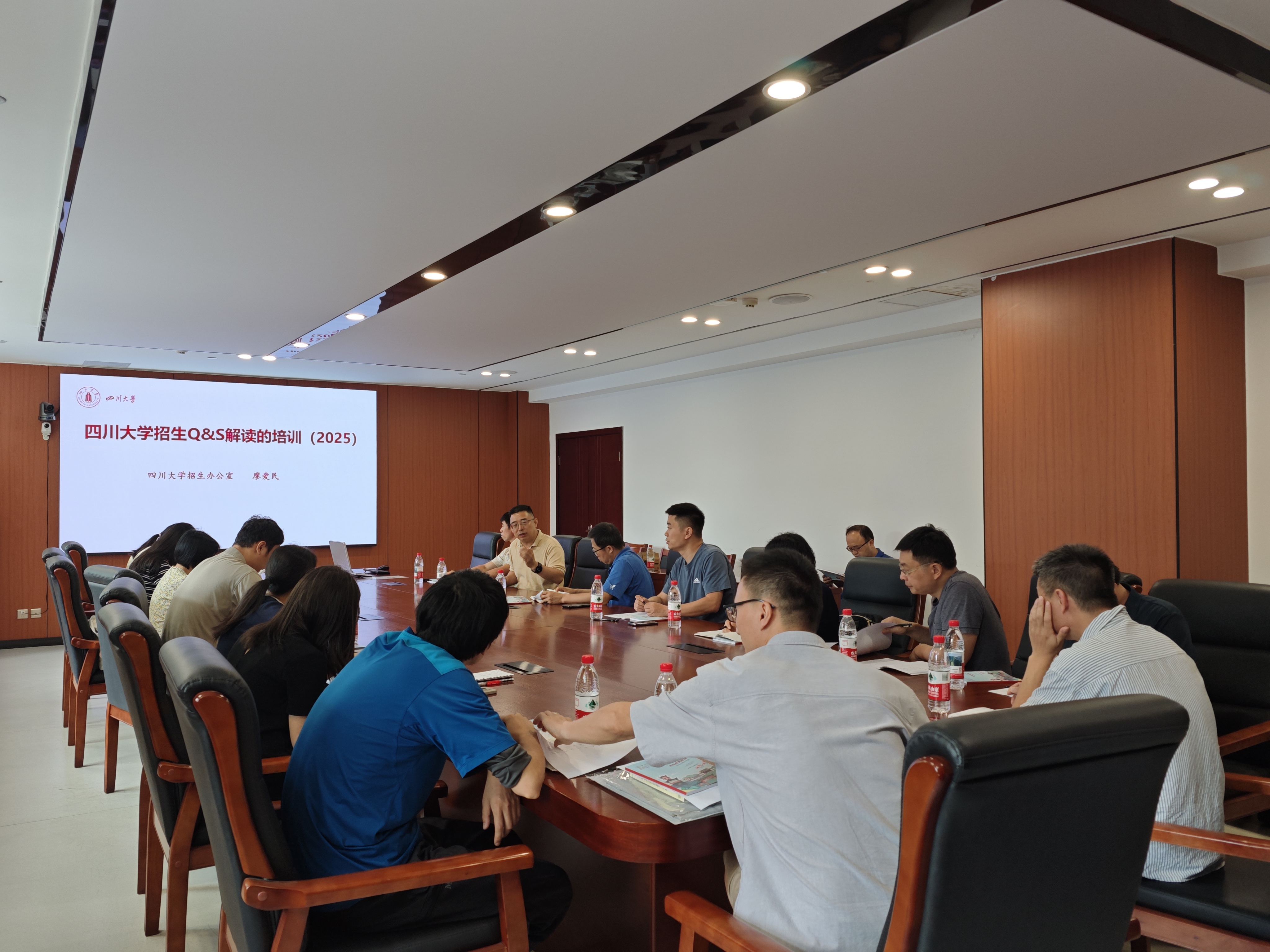 会议特别邀请学校招办副主任廖爱民老师莅临现场,廖主任不仅对2025年招生政策进行了全面且深入的解读,还对招生章程、录取政策、新高考改革和强基计划等多方面进行了细致分析与讲解。详实的政策解读,为学院后续开展招生宣传和咨询工作筑牢了坚实基础,让招生组老师对招生工作的方向和重点有了更清晰的认知。