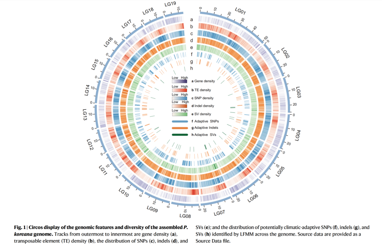 2022年11月1日,Nature Communications在线发表了bat365在线中国官网登录入口王婧教授、毛康珊教授和刘建全教授课题组合作的题为"Genomic insights into local adaptation and future climate-induced vulnerability of a keystone forest tree in East Asia"的研究论文。该研究以分布在我国东北温带针阔混交林的重要林木树种-香杨(Populus koreana)为研究对象,从头组装(de novo)并注释了香杨染色体水平的参考基因组,并对野外采集的24个香杨自然群体的230个体进行全基因组重测序。进一步运用生态学、基因组学、群体遗传学等方法,并结合气候因子关联分析、分子生物学实验验证和机器学习算法等对香杨适应不同气候环境的分子遗传机制展开探究,同时评估了未来气候快速变化的背景下香杨不同种群的基因组脆弱性大小。该研究强调了运用交叉学科手段对预测物种对气候和环境变化的响应和应对策略研究的重要性。