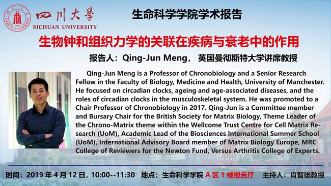 英国曼彻斯特大学讲席教授Qing-Jun Meng4月12日学术报告