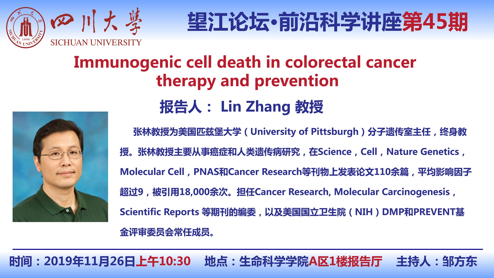 美国匹兹堡大学Lin Zhang教授11月26日学术报告