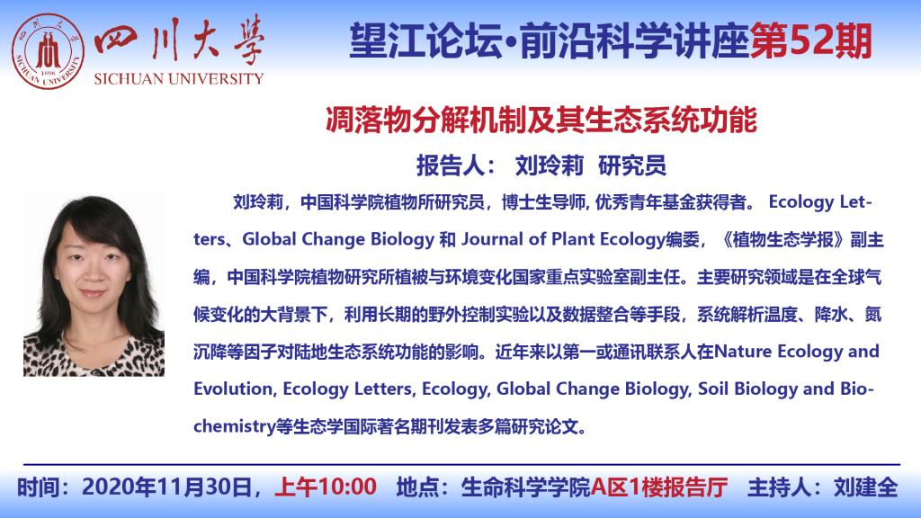 中科院植物所刘玲莉研究员11月30日学术报告