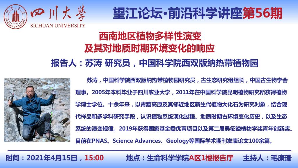 中国科学院西双版纳热带植物园苏涛研究员4月15日学术报告