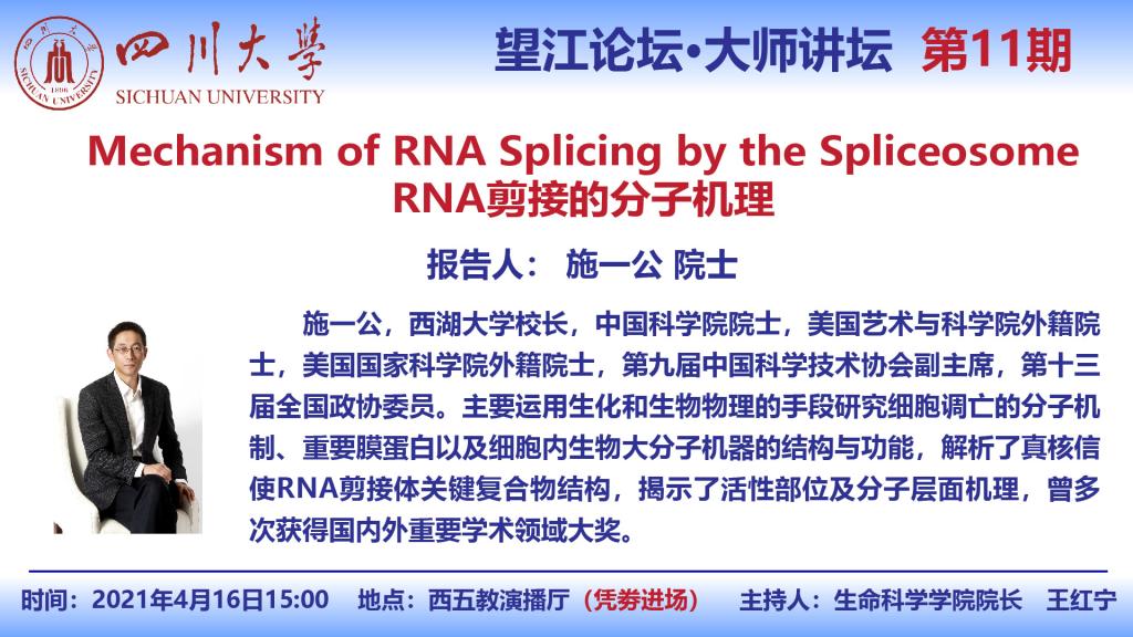 西湖大学校长施一公院士4月16日学术报告