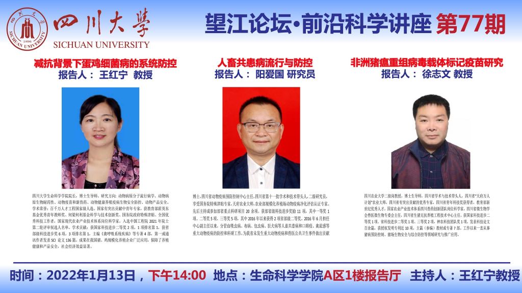 动物疫病防控与食品安全四川省重点实验室 四川省畜牧兽医学会动物预防医学分会2021年度总结暨学术报告会(1月13日)