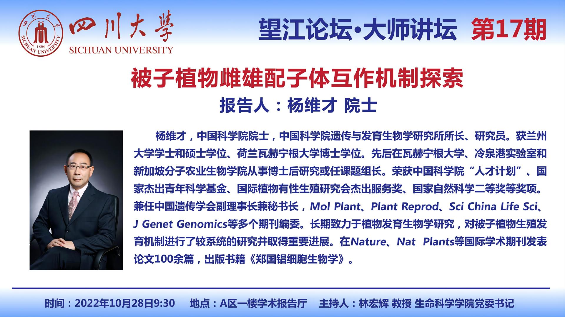 杨维才院士10月28日学术报告