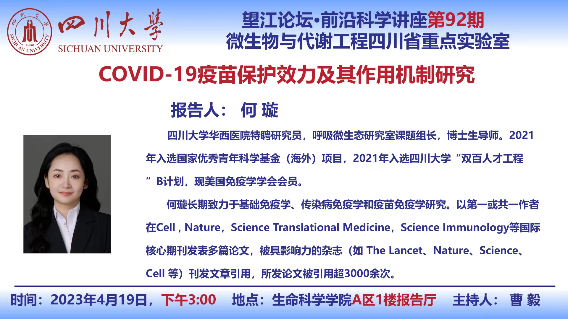 望江论坛-前沿科学讲座(第92期):何璇研究员4月19日学术报告